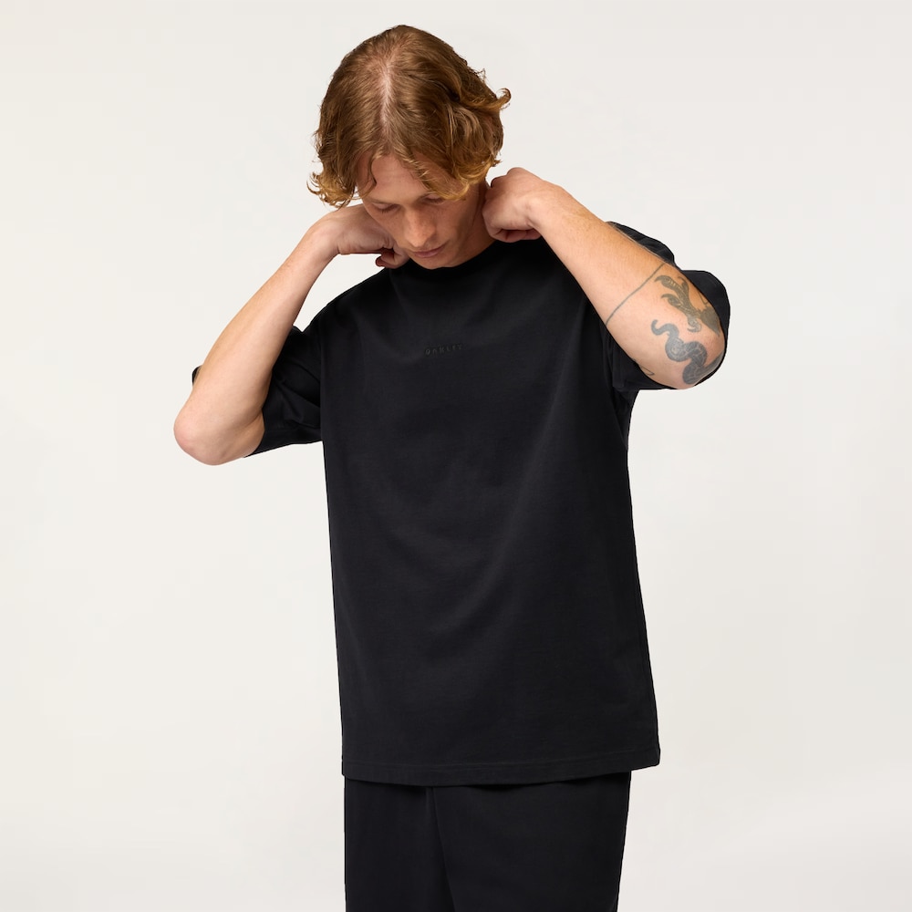 Plain cotton jersey tee with peached effect and boxy fit to maximize everyday wearer comfort. It sports a timeless ribbed collar and an ever-so-subtle tonal embroidered Oakley Bark logo on the chest, a tacit nod to the quality of the garment.