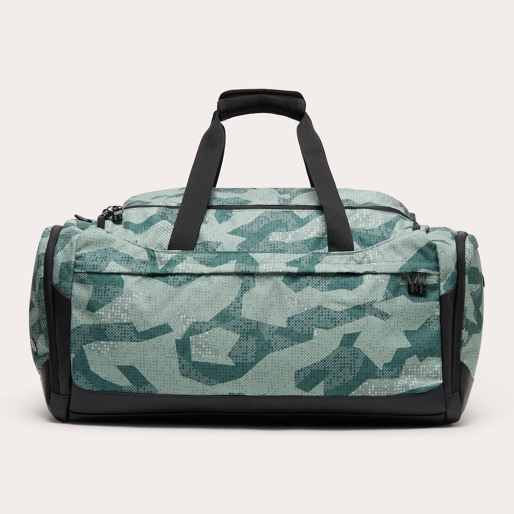 - Duffle bag with ergonomic carrying handles and an adjustable, detachable messenger strap
