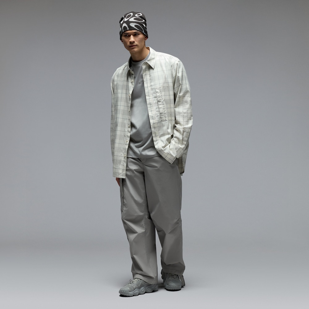 Chemise à carreaux légère en flanelle de coton teint en fil. Fermée sur le devant et aux poignets par des boutons siglés, elle présente un col chemise classique et s'accompagne d'une poche poitrine à fermeture éclair et logo brodé mat. Double et triple couture pour une structure durable.